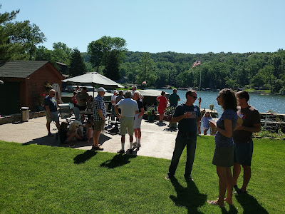 After each day's races, sailors and volunteers, past and present, gathered on Arlene Truex's patio overlooking the lake to re-live the race, resolve any rule infractions a.k.a. "protests" (thus the term "protest meeting"), but mainly just to socialize. Thank you Arlene for hosting us!